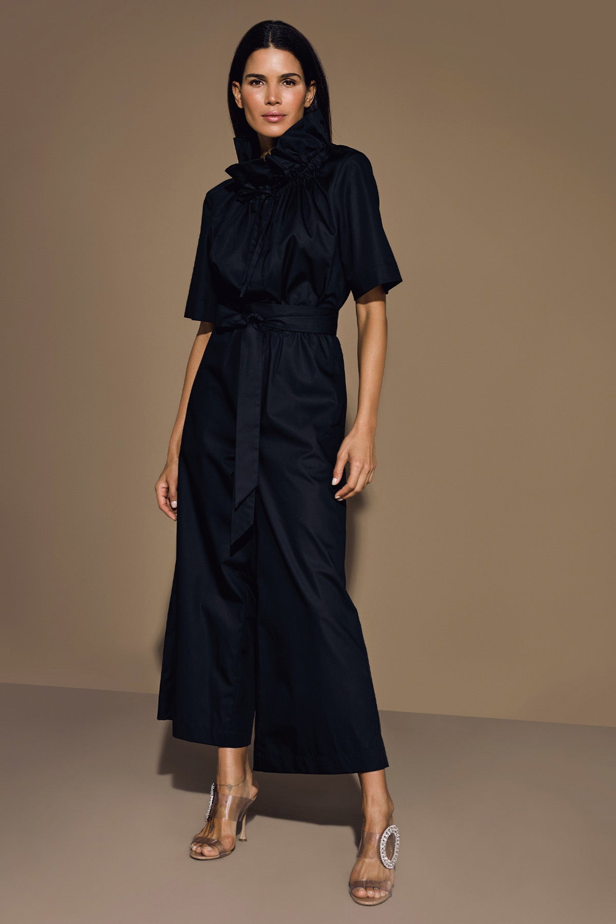 - It has a pulled collar and can be worn individually at the waist with a belt.