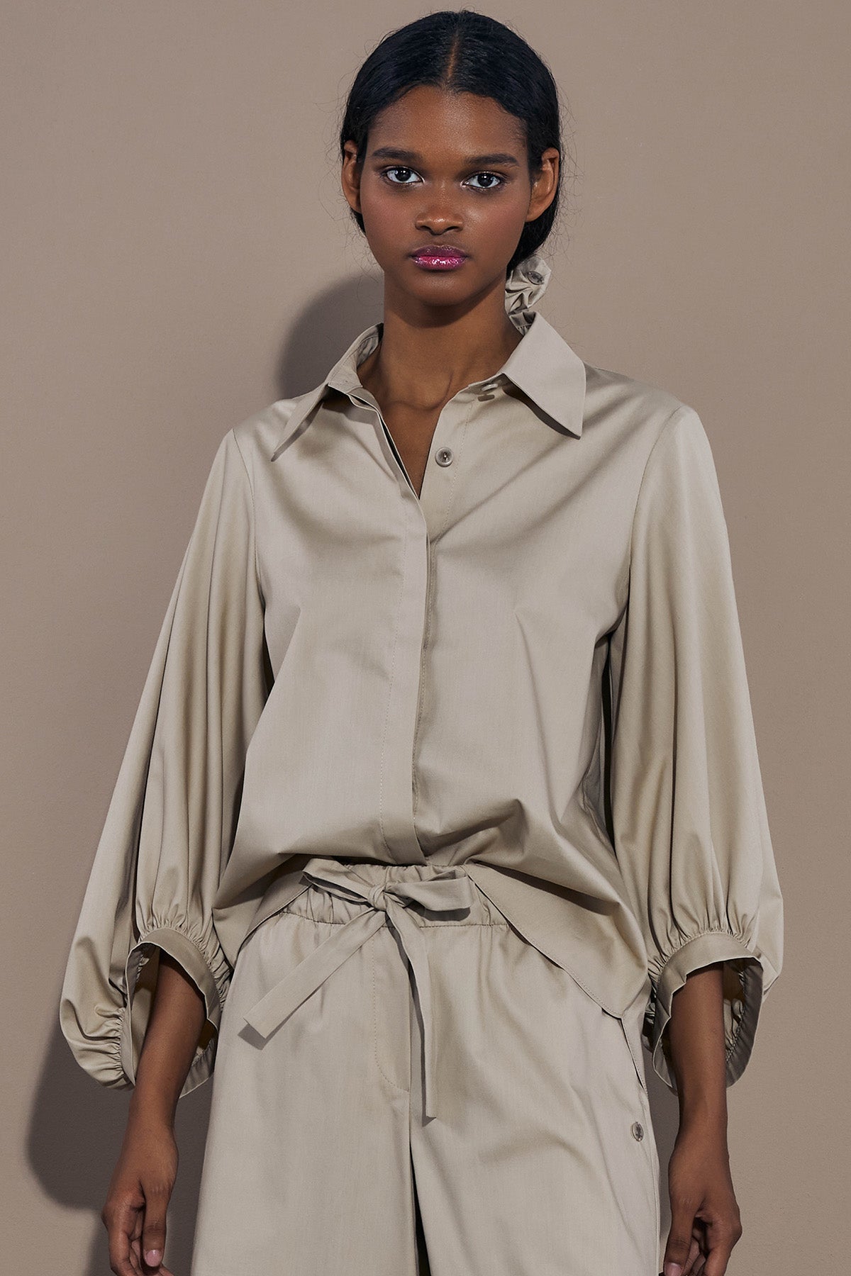 This ultra-modern blouse made from our unique Miracle-Fibre has balloon sleeves in 3/4 length and a straight cut. It goes perfectly with jeans, a midi skirt or white trousers.