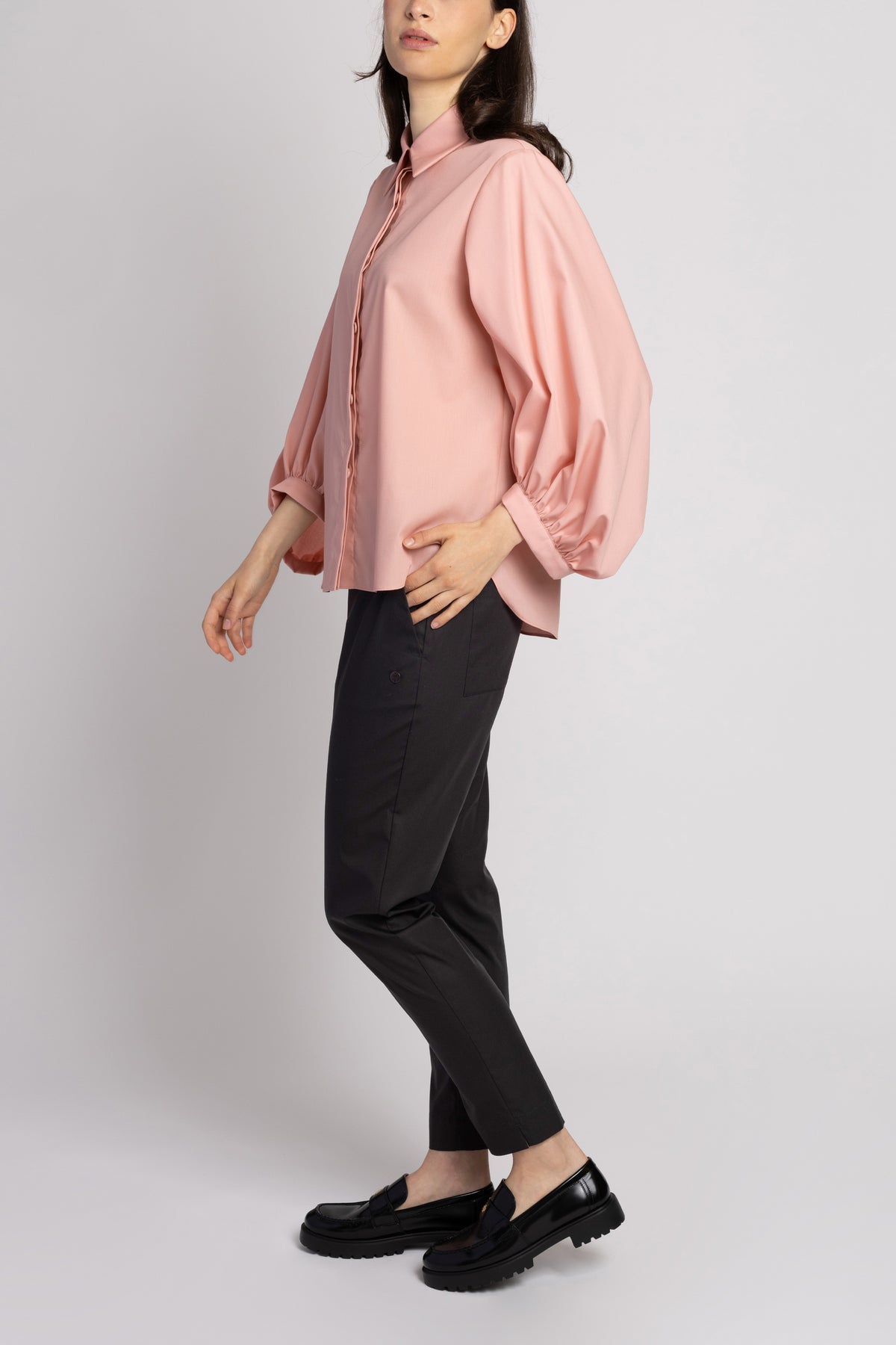 This ultra-modern blouse made from our unique Miracle-Fibre has balloon sleeves in 3/4 length and a straight cut. It goes perfectly with jeans, a midi skirt or white trousers.