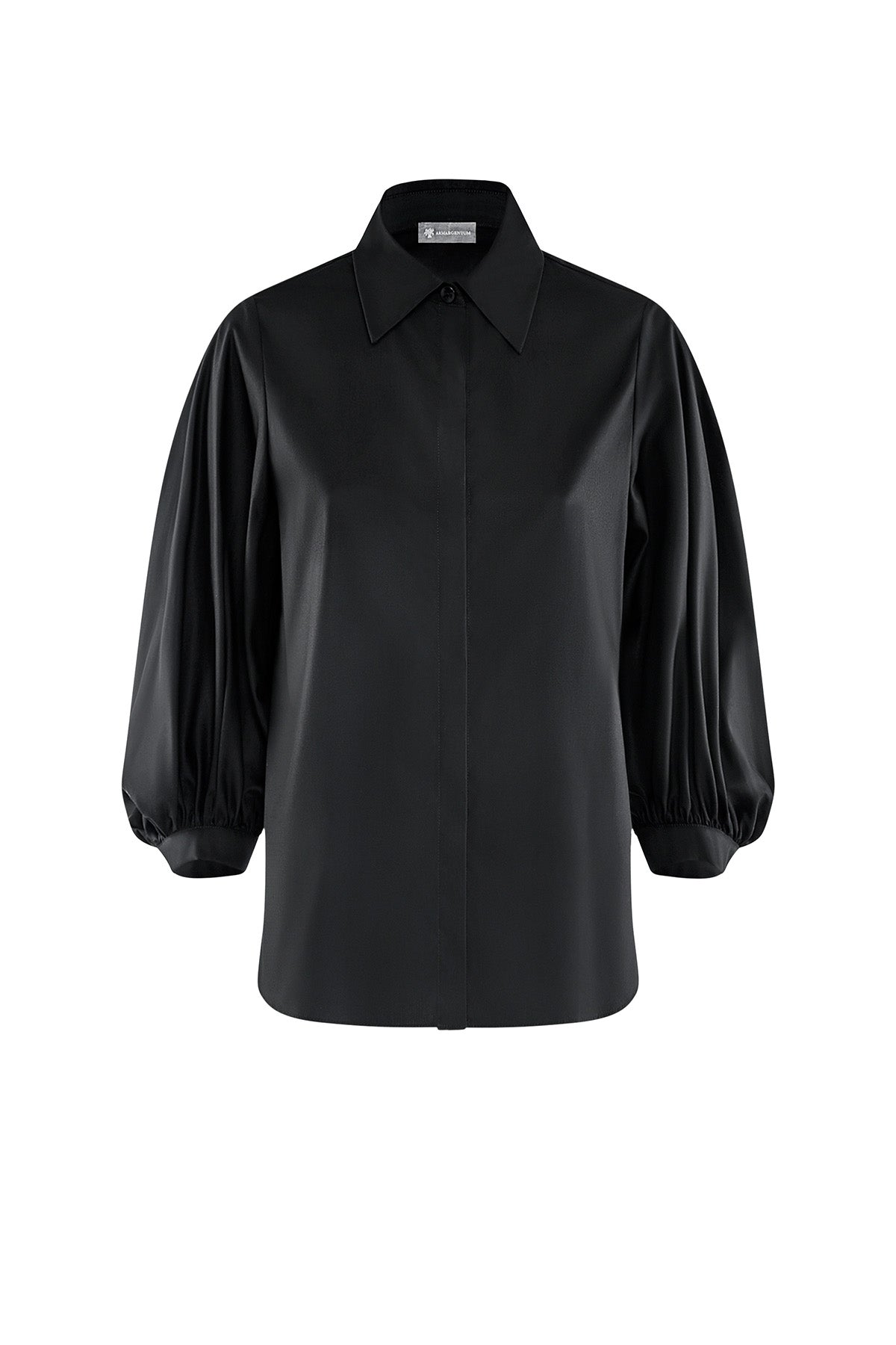 Cette blouse ultramoderne en notre fibre Miracle unique a des manches ballon de longueur 3/4 et une coupe droite. Elle se porte parfaitement avec un jean, une jupe midi ou un pantalon blanc.