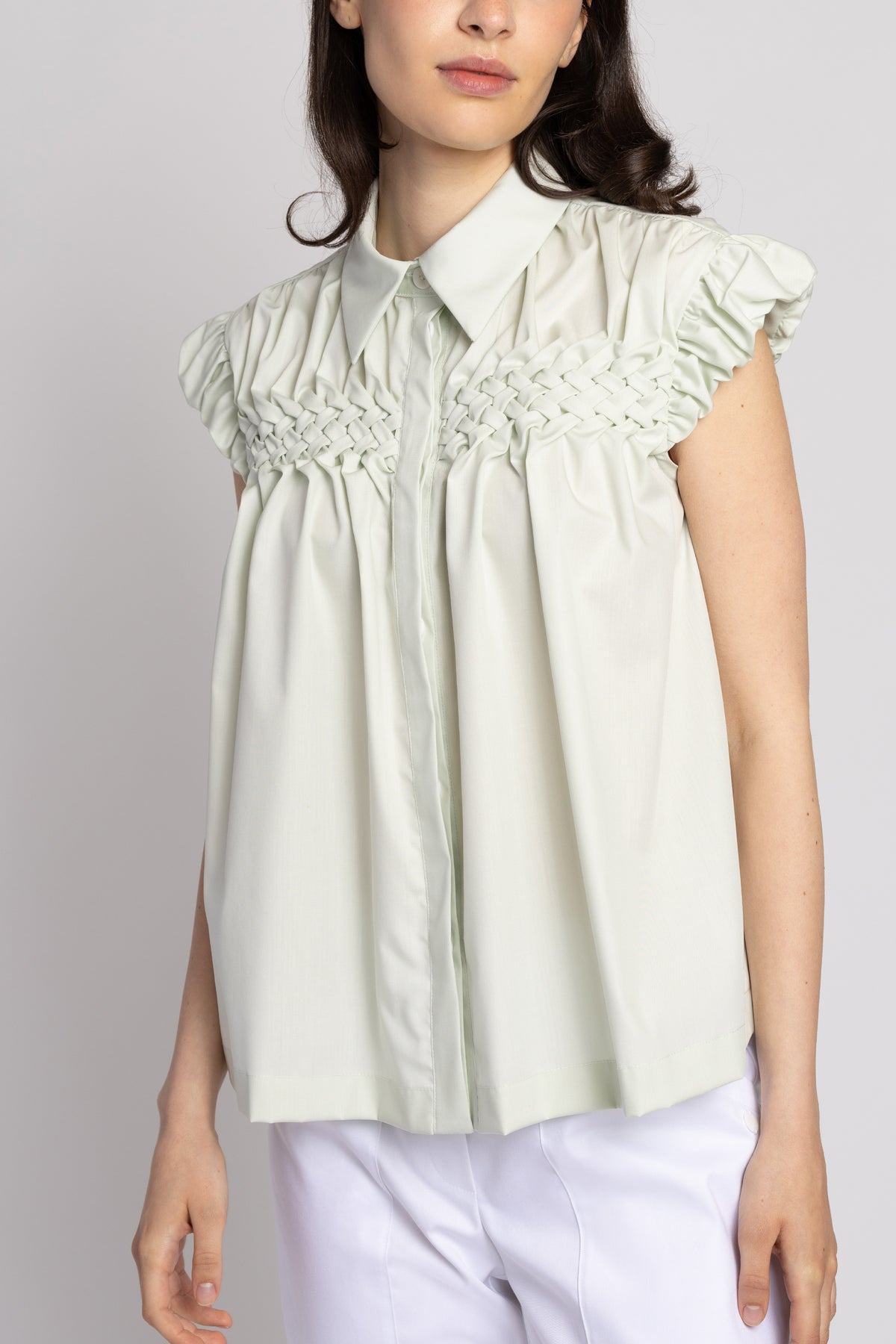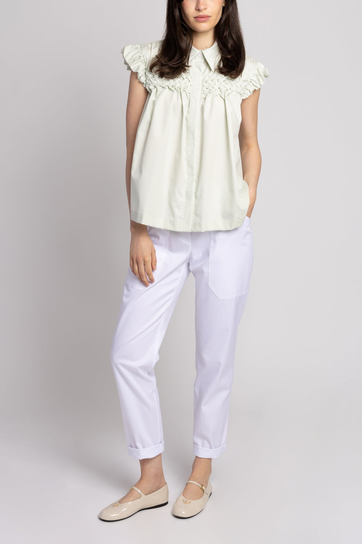 Die JADA Bluse mit Smok in Flecht-Optik und XS-Flügelärmeln ist das ultimative, mühelose Oberteil zum Überwerfen und toll Aussehen. Kombinieren Sie das Top zu einer lässigen Jeans, einem eleganten Faltenrock oder einer entspannten Baumwollhose wie unserer FEMI Pants und genießen Sie den perfekten „Je ne sais quoi“-Look. Und sollten Sie sich gelegentlich nach einem extra Stylingkick sehnen, dann drehen Sie das Oberteil doch einfach um und tragen Sie die verdeckte Knopfleiste am Rücken. Ecofriendly Fashion hat noch nie so gut ausgesehen!