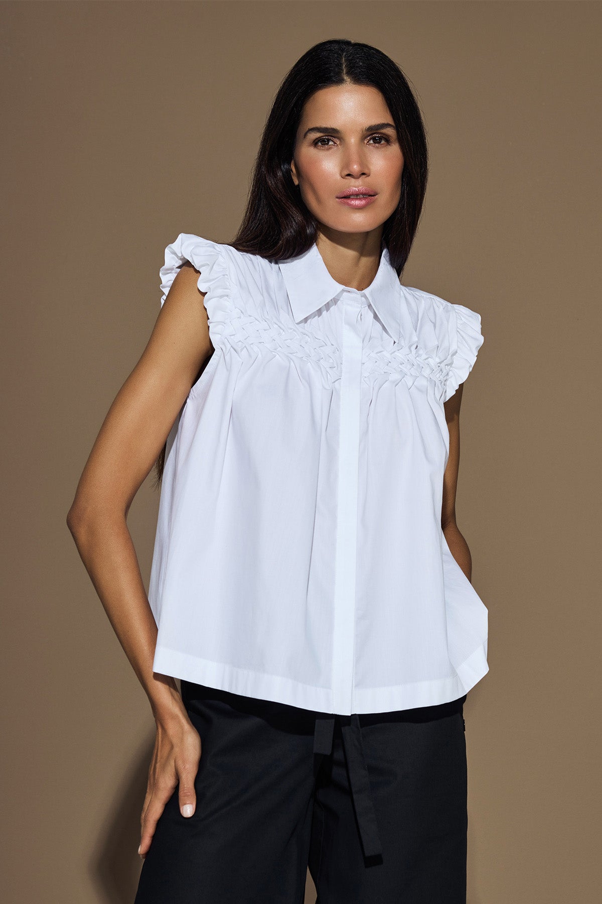 Die JADA Bluse mit Smok in Flecht-Optik und XS-Flügelärmeln ist das ultimative, mühelose Oberteil zum Überwerfen und toll Aussehen. Kombinieren Sie das Top zu einer lässigen Jeans, einem eleganten Faltenrock oder einer entspannten Baumwollhose wie unserer FEMI Pants und genießen Sie den perfekten „Je ne sais quoi“-Look. Und sollten Sie sich gelegentlich nach einem extra Stylingkick sehnen, dann drehen Sie das Oberteil doch einfach um und tragen Sie die verdeckte Knopfleiste am Rücken. Ecofriendly Fashion hat noch nie so gut ausgesehen!