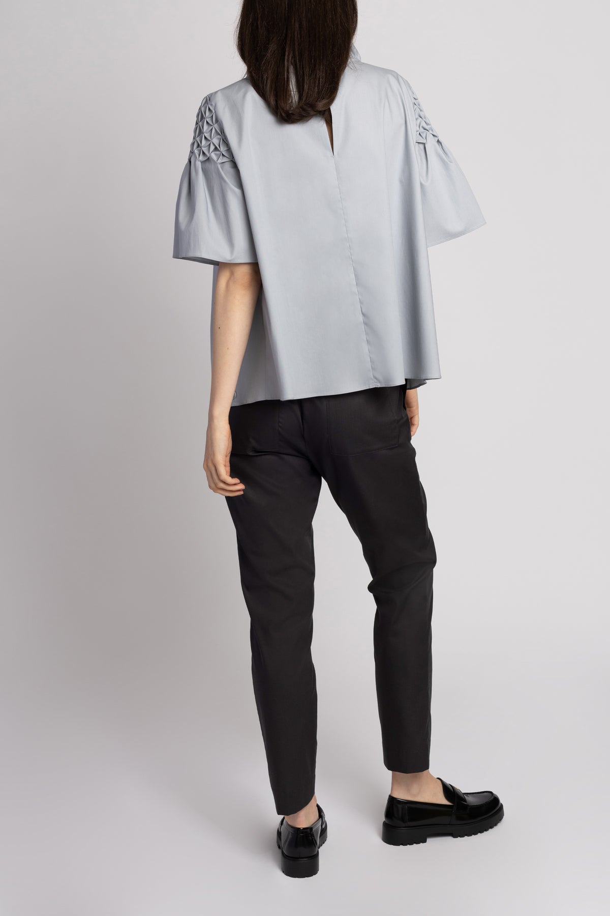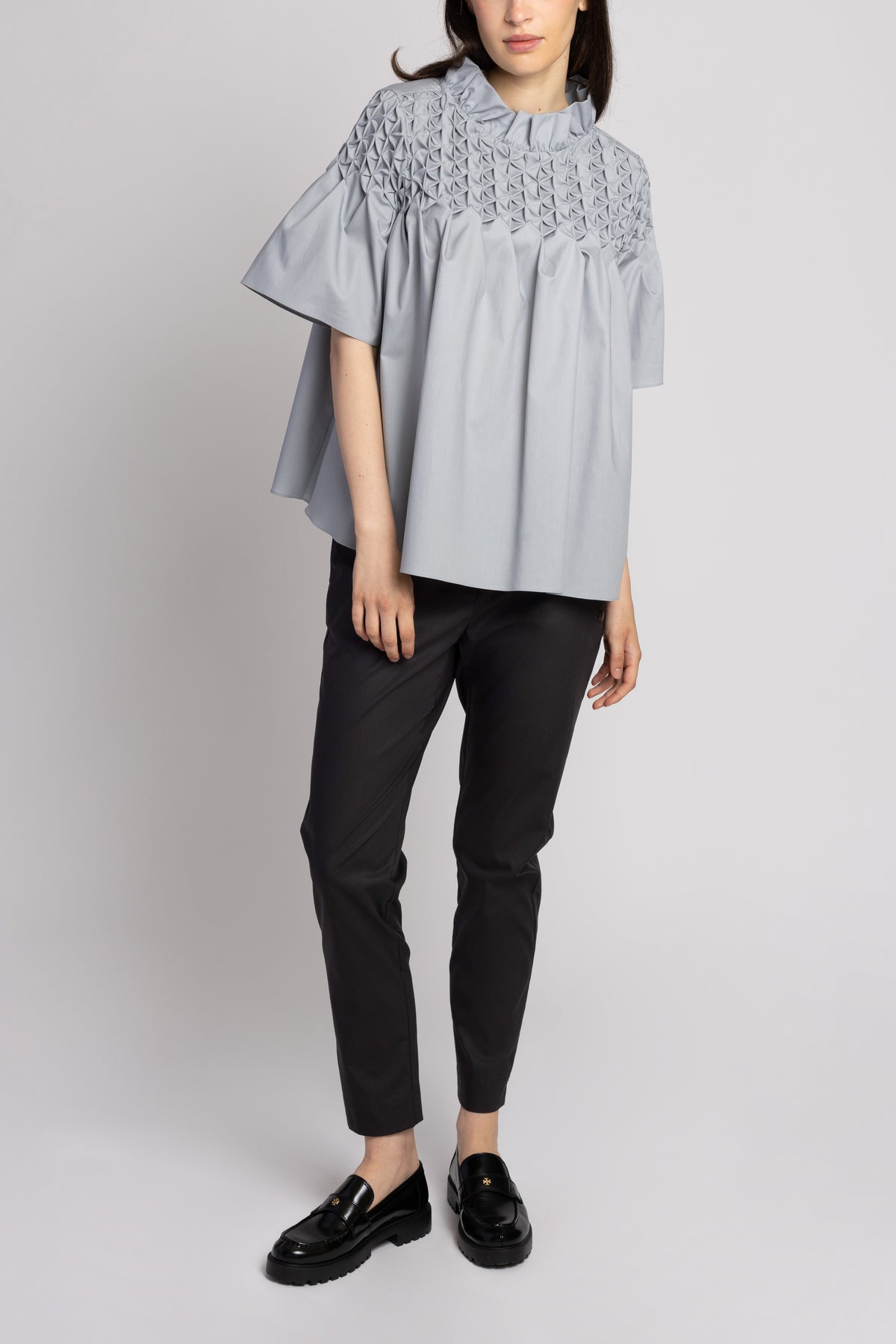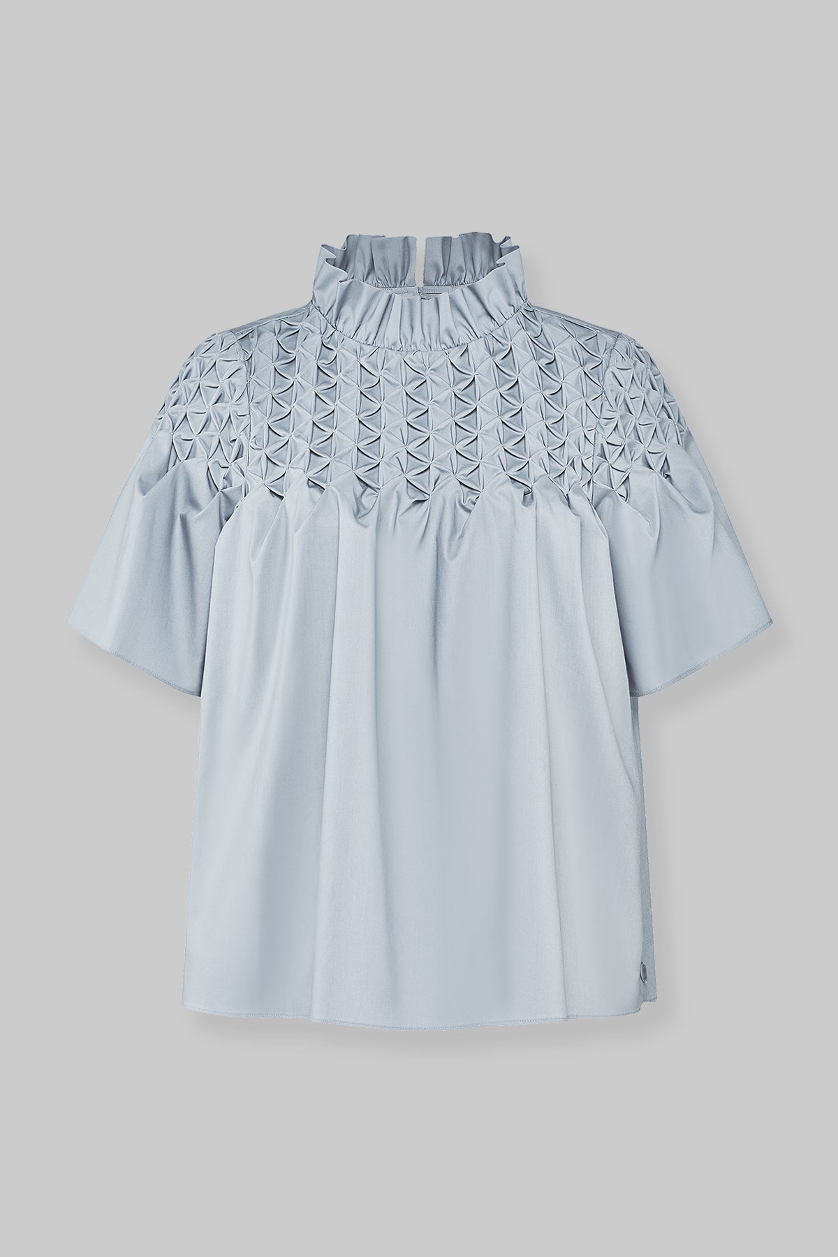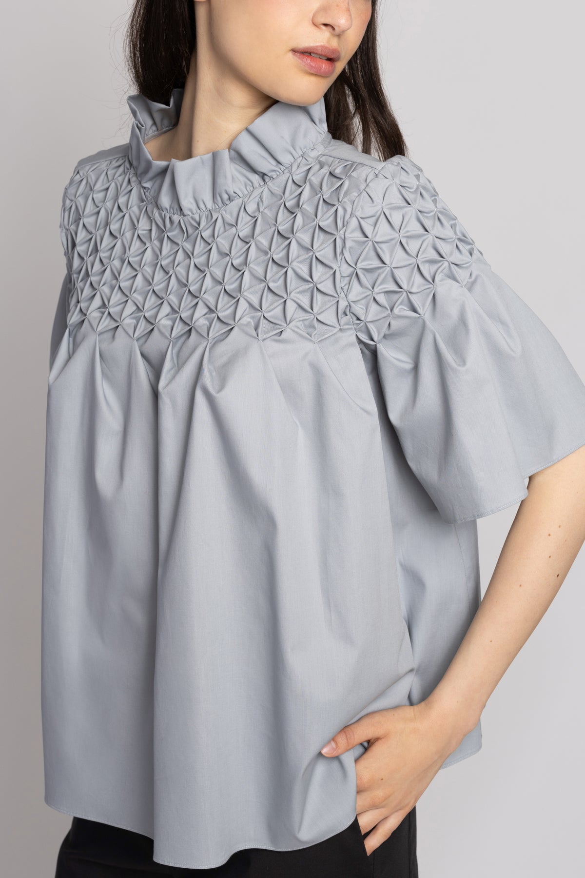 Klassisch, tragbar und dennoch ganz besonders: Das ist unsere KOKO Bluse. Das exklusive Slow-Fashion-Essential mit spektakulärem, handgearbeitetem Blumen-Smok, lässigem Stehkragen und kurzen Ärmeln lässt sich nicht nur superleicht up- und downdressen, sondern garantiert dank unseres nachhaltigen Baumwollmaterials auch höchsten Tragekomfort. Für einen smarten Everyday-Look empfehlen wir unsere schmale FAYA Hose als optimalen Styling-Partner. Ein aufregender Glamour-Look entsteht, wenn Sie das Oberteil in einen ausgestellten Midi-Rock stecken. Sie sehen, Ihrer Fashion-Fantasie sind keine Grenzen gesetzt.