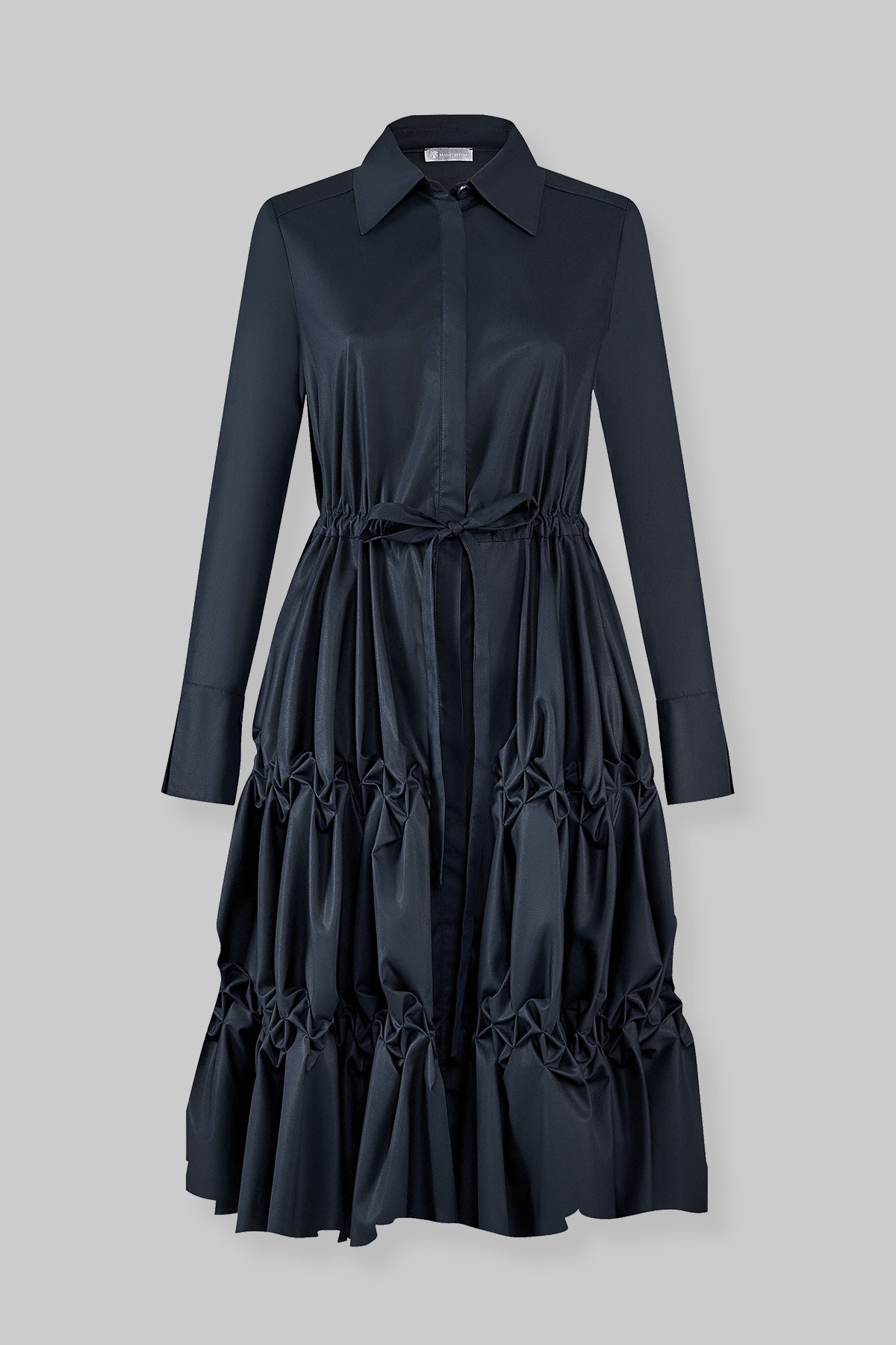 Das Hemdblusenkleid, ein Markenzeichen von ARMARGENTUM, ist die Antwort auf die mühelose Eleganz des Sommers. Aus luxuriöser und nachhaltiger Baumwolle gefertigt, besticht unser LEXA Kleid durch seinen weit schwingenden Rock mit aufwendig handgefertigtem Blumensmok, der für sinnliche Bewegung sorgt. Bewegung kommt dank raffinierter Details übrigens auch ins Styling: So lassen sich die Ärmel dank geschlitzter Manschetten problemlos hochkrempeln und die Silhouette mit dem eingearbeiteten Taillengürtel ganz einfach nach individuellen Vorlieben verändern. Kombinieren Sie das feminine Kleid mit Sandaletten in schimmernden Metallic-Tönen und Sie werden für (fast) jedes Sommerevent perfekt gekleidet sein.
