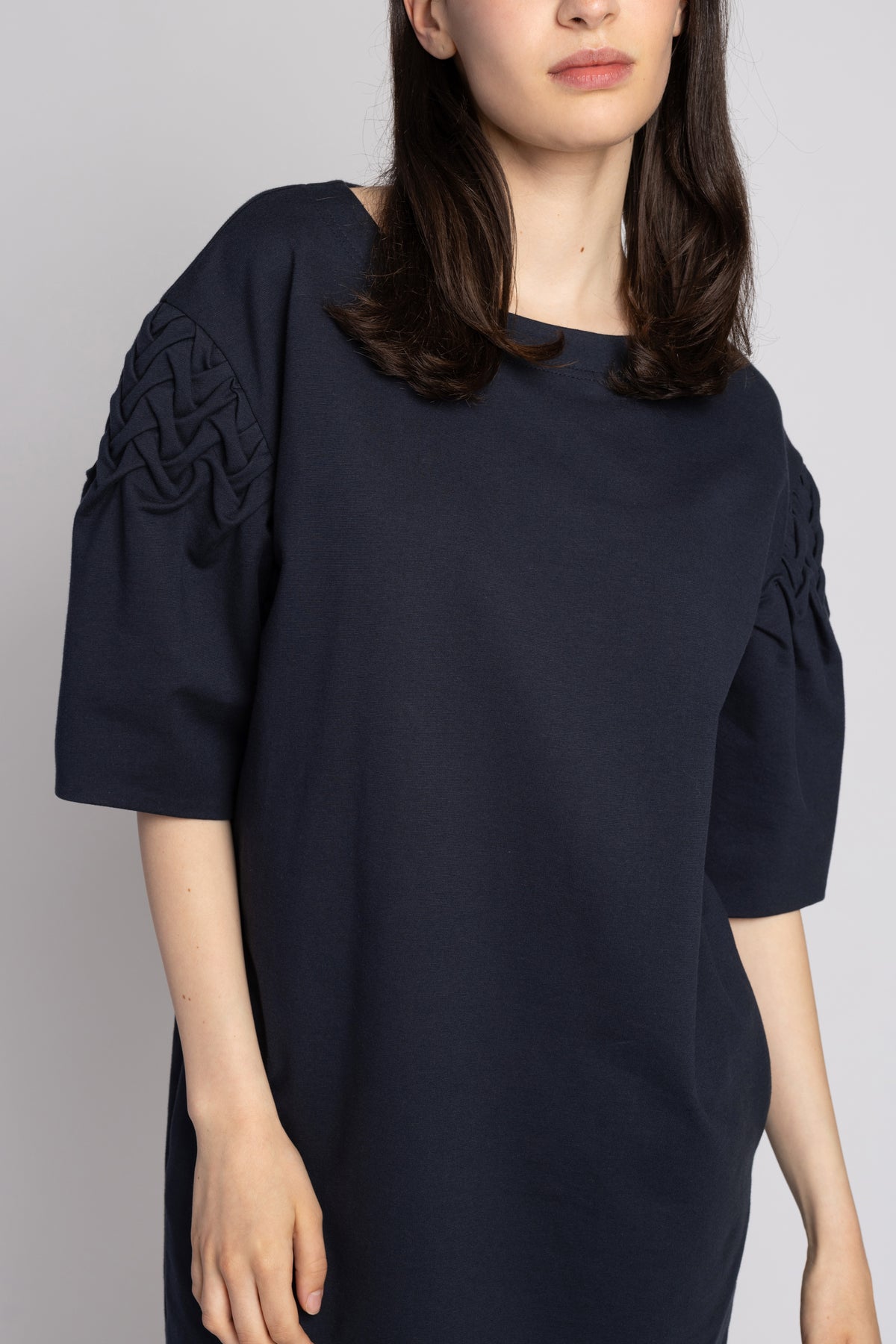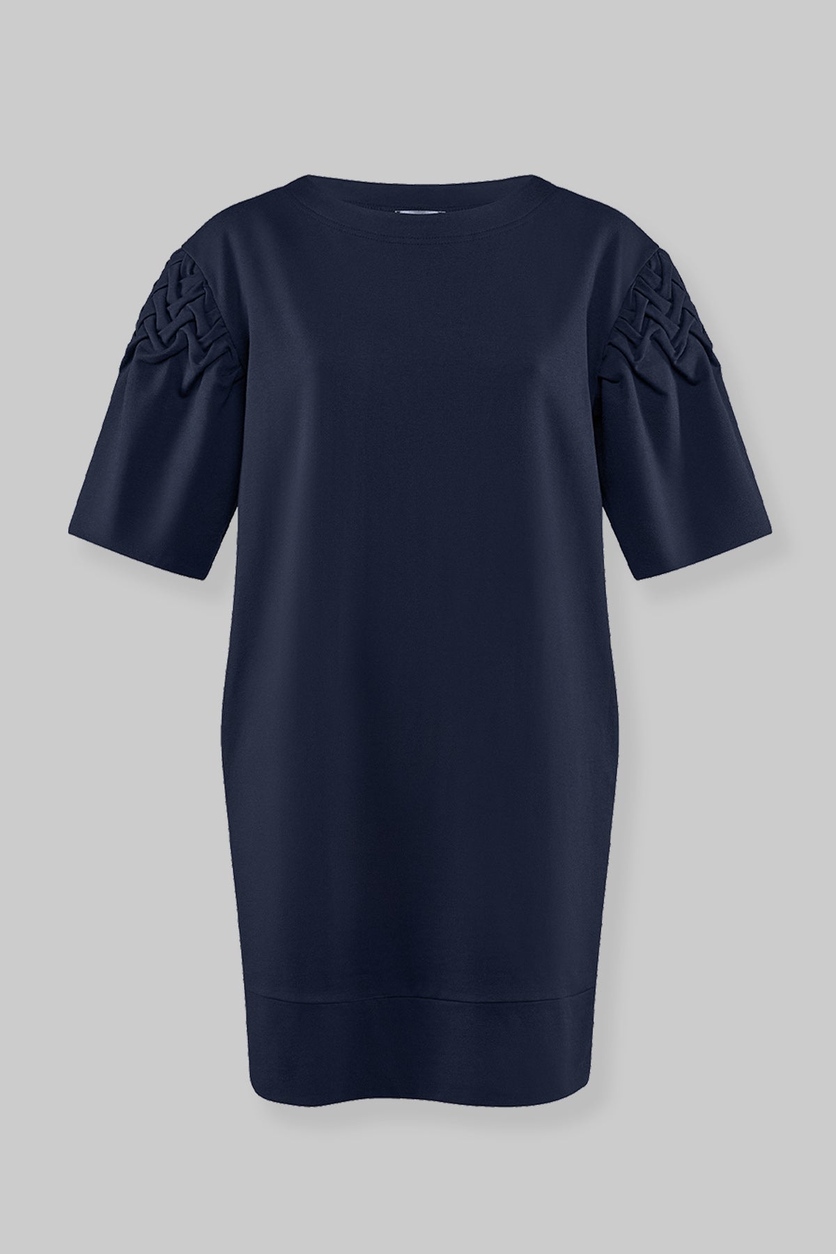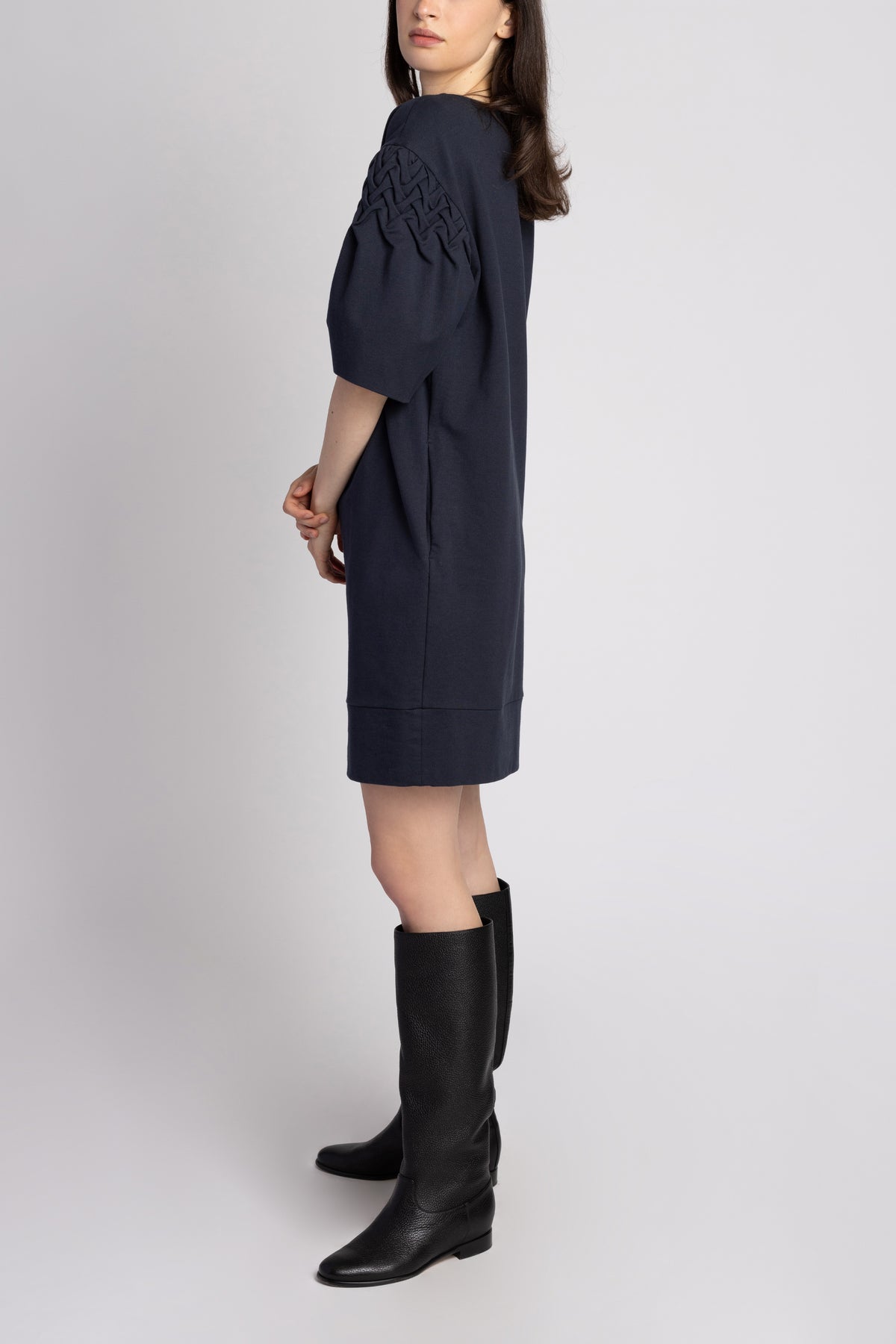 Das MAVIE Lounge Dress definiert schlichte Eleganz neu! Aus luxuriösem Baumwolljersey, erhältlich in Schwarz, Navy und Taubenblau, bietet es eine lässige Silhouette mit gesmokter Schulterpartie. Im Winter mit Rollkragenpullover und MONA Pant, im Sommer solo mit Sneakers oder Sandalen – ein ganzjähriger Style-Highlight!