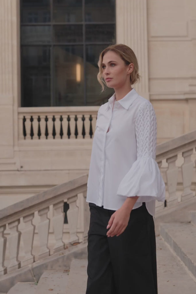 Die MARLA Bluse ist das Must-Have der Saison! Aus luxuriöser, nachhaltiger Baumwolle gefertigt, überzeugt sie mit voluminösen, handgesmokten Ärmeln und einem modernen Schnitt mit verdeckter Knopfleiste. Perfekt für jeden Anlass – ob zu Jeans, eleganten Midi-Röcken oder weiten Wollhosen.